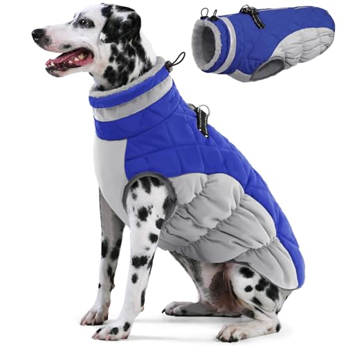 AOFITEE Hundemantel Winter Grosse Hunde, Winter Warme Hundejacke Rollkragen Wintermantel für Hunde, Reflektierende Fleece Hundemantel Winterweste Hundepullover Haustier Skifahren Kostüm, XXL Blau