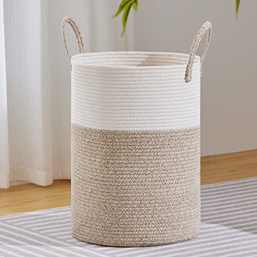 MYHOMMATTO Wäschekorb,Aufbewahrungskorb,Geflochten Korb,72L Groß Rund Wäschesammler mit Baumwoll Henkel für Kinderzimmer,Korb für Decken und Spielzeug für Wohnzimmer oder Waschraum,Braun & Weiß