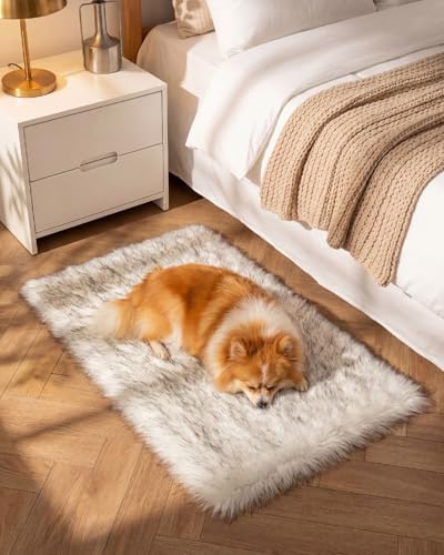 Gofodsil Teppich aus Kunstfell 60x110 cm,Weiß & Grau-Weicher, Flauschiger Teppich, maschinenwaschbarer Plüschteppich für Schlafzimmer, Wohnzimmer-Weicher Bettvorleger & Wohnaccessoire