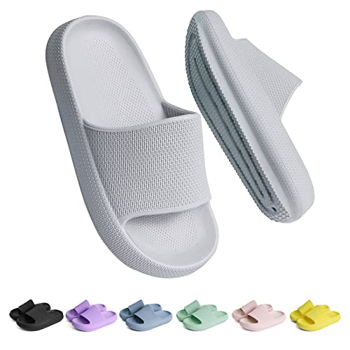 Buwege Unisex Kinder Badelatschen Jungen Mädchen Badeschlappen Cozy Slides Wolken Schlappen Original Eva Weiche Dicke Sohle rutschfeste Schwimmbad Strand Badeschuhe Lichtgrau 29 EU