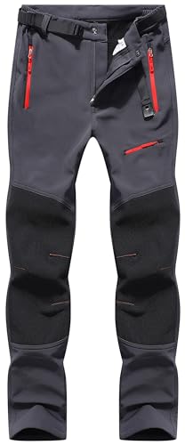 BenBoy Herren Wanderhose Wasserdicht Skihose Softshellhose Winddicht Outdoorhose Winter Warm Gefüttert Trekkinghose Snowboardhose KZ41130M-Red Grey-M