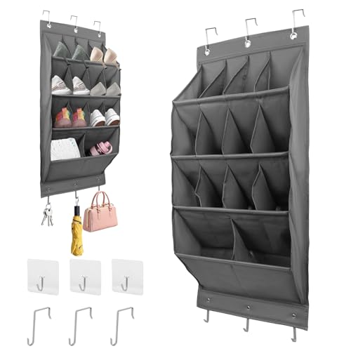 FitRepa Schuhaufbewahrung Hängend Schuh Organizer Hängend mit 12 Großen Taschen, Über der Tür Schuhregal für Schrank mit 3 Metallhaken und 3 Haken Selbstklebend (Grau)