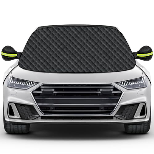 Mengine Frontscheibenabdeckung, Auto Windschutzscheibe Abdeckung mit 9 Versteckten Magneten und Seitenflügel Spiegel,Eisschutzfolien Frost Guard Fit für Autos und SUVs (Schwarz, 148 * 120cm)