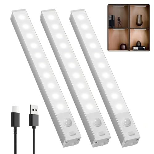 GOODEA 18cm Slim Bright LED Schrankbeleuchtung - Kleines Aluminium Schranklicht mit Bewegungsmelder - 3 Stück Dimmbare Schrankleuchten für Kleiderschrank, Unterschrank, Bücherregal, Keller, 8000K