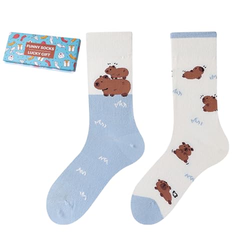 NxnChc Lustige Socken Für Damen Und Herren Unisex Viele süße Capybara Motive Tier Essen Obst Sport Kunst Aus Baumwolle Geschenk Asymmetrische Muster Links Und Rechts