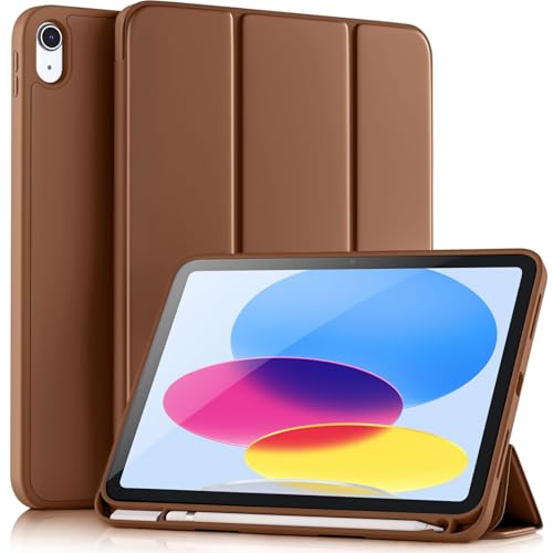 Vobafe Hülle Kompatibel mit iPad A16 11/10 Generation (Modell 2025/2022, 10,9/11 Zoll), Flexible TPU Rückseite, stoßfeste Schutzhülle mit stifthalter, Auto Schlafen/Wachen, Braun