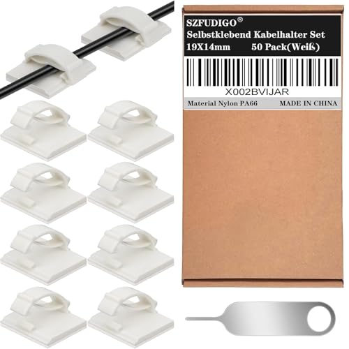SZFUDIGO selbstklebend kabelhalter 50 Pack Weiß, geeignet für Kabel mit einem Durchmesser von ≤ 6 mm in Autos, Häusern und Büros.