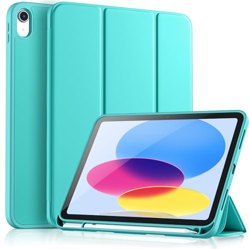 Vobafe Hülle Kompatibel mit iPad A16 11/10 Generation (Modell 2025/2022, 10,9/11 Zoll), Flexible TPU Rückseite, stoßfeste Schutzhülle mit stifthalter, Auto Schlafen/Wachen, Aquamarinblau