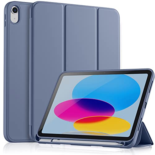 Vobafe Hülle Kompatibel mit iPad 10 Generation 2022, Flexible TPU Rückseite, stoßfeste Schutzhülle mit stifthalter für iPad 10. Gen 10,9 Zoll, Auto Schlafen/Wachen, Lavendel