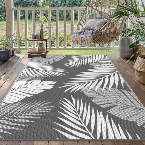 GENIMO Outdoor Teppich 150x240cm Wetterfest, Waschbarer Camping Teppich Wendbar UV-bestandig Carpet, Kunststoff-Picknickdecke für Balkon, Garten, Wohnmobil, Deck, Hinterhof, Schwarz & Grau