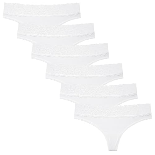 INNERSY String Tanga Damen Baumwolle Spitze Weiß Dessous Sexy Unterwäsche für Frau 6er Pack (S, 6 Weiß)