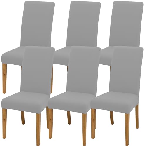 DREAHOTEXTIL Stuhlbezüge (4/6 Stück), weich und geschmeidig, in leuchtenden Farben, für Wohnzimmer, Küche, Büro, Restaurant, Partys – praktische Stuhlbezüge. (6, Hellgrau.)