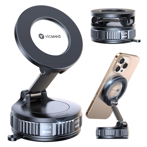 VICSEED 2025 Militärische Handyhalterung Auto Magnet für Magsafe Autohalterung [20XN55 Magnets & 20KG Vakuum Saugnapf] 360°Drehbar Magnetische Kfz Handyhalter für iPhone17 Pro Max Samsung Alle Handy