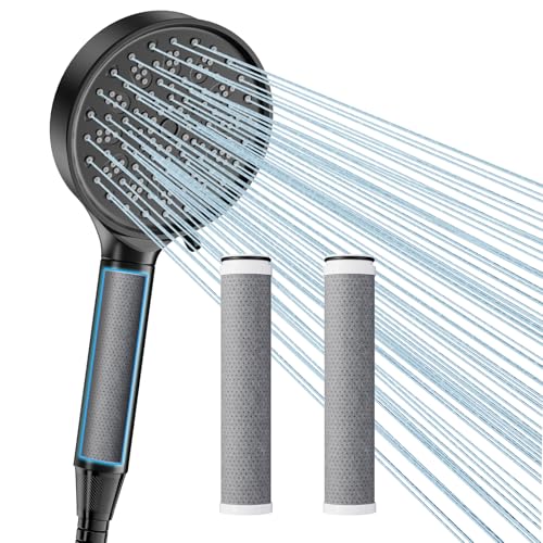 Filter Duschkopf mit Schlauch, 6 Strahlarten Handbrause mit Filtration in 20 Schichten und 2 Ersatz Carbon Duschfilter, Hochdruck Sparduschkopf mit Filter Gegen Kalk für Hartes Wasser, Chlor
