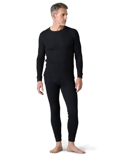 LAPASA Herren Premium Waffelstrick Thermounterwäsche Set, Thermo Oberteil & Lange Unterhosen Unterwäsche Set (Warm M60), Schwarz, Warm, S