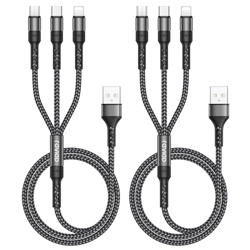 RAVIAD Multi USB Kabel [2Stück 2M] 3 in 1 Universal Ladekabel Schnellladekabel Mehrfach Ladekabel mit Micro USB Typ C Lightning Kabel für iPhone 16/15, Galaxy S24/S23, Huawei, LG, HTC - Grau