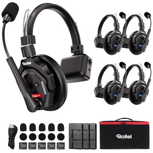 Rollei XTALK X5 Intercom Headsets 2,4GHz Kabelloses Kommunikationssystem 350M Reichweite 20H Gegensprechanlage Kopfhörer für Teamkommunikation Kommunikationssystem-Teamkommunikation-Kopfhörer-Intercom