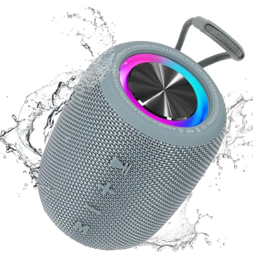 SENXINGYAN Bluetooth Lautsprecher 20W, Bluetooth Box, LED Musikbox Wasserdicht IPX6, 360° HD Stereo Lautsprecher Sound, 16H Spielzeit, Unterstützung von FM Radio/AUX/TF (Grau)