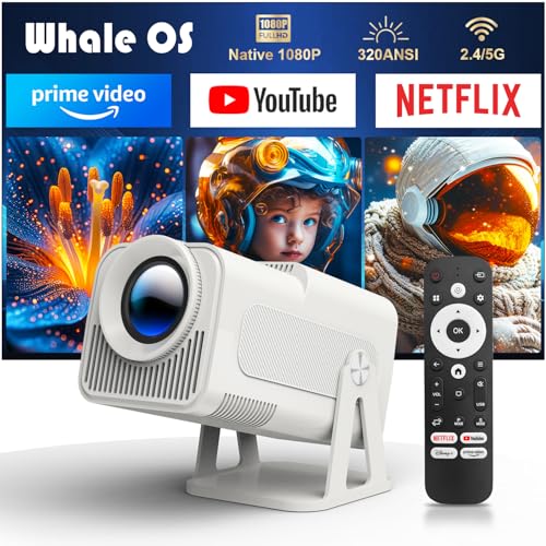 [Netflix Offiziell] Smart Beamer HY320 NTV mit Various Offiziell TV Apps,Sprachassistent 1080P Nativ/Optische Auflösung 320ANSI 12000Lumens 5G WiFi Auto Trapezkorrektur Projektor für Heimkino/Outdoor