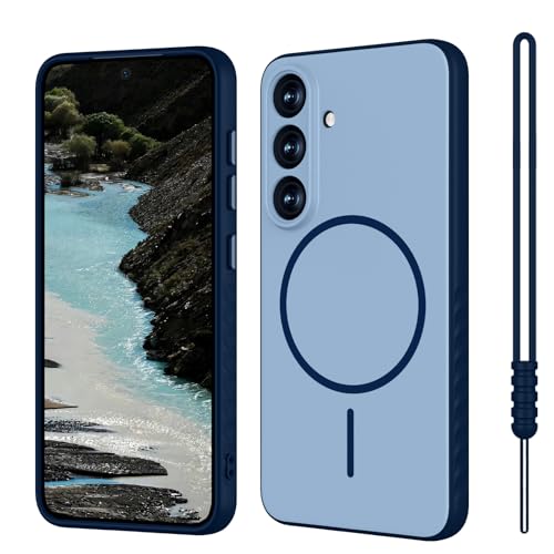 YUANDMI für Samsung Galaxy S24 Hülle kompatibel mit MagSafe, Handyhülle für Samsung Galaxy S24 Magnetisch Matte Touch Silikon Kameraschutz, rutschfest Kratzfest Stoßfest Hülle Dunkel Blau