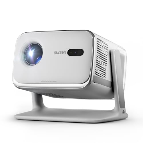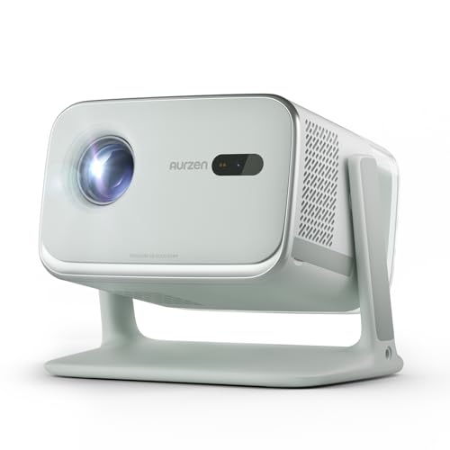Aurzen Boom Mini Smart Beamer mit Google TV, 4K Unterstützt Heimkino & Outdoor Projektor, 20W DoIby Audio, 500 ANSI Projector, ToF Autofokus & Trapezkorrektur, WLAN/Bluetooth/Handy (Cremeweiß)