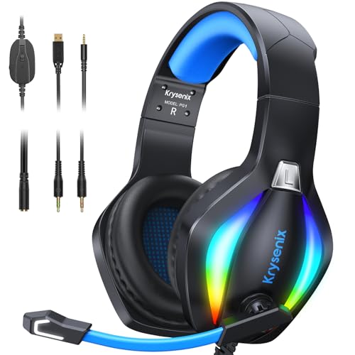 Krysenix PG1 RGB Gaming Headset für PS4/PC/Xbox, PS5 Headset mit Mikrofon, Gaming Kopfhörer mit Mikrofon, Noise Cancelling Kopfhörer mit 3.5mm Klinke Schwarz/Blau