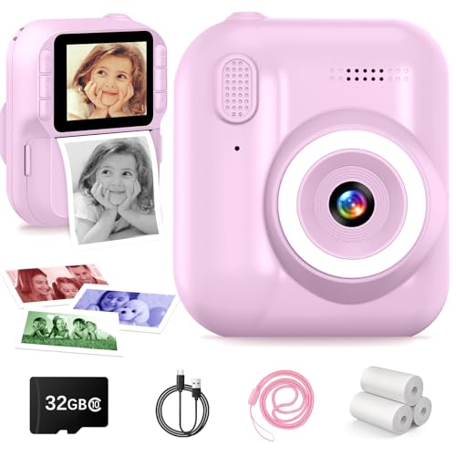 Kinderkamera Sofortbildkamera, 1080P Sofortbildkamera Kinder mit 32GB Karte & 3 Rollen Druckpapier, 2,4" Bildschirm Digitalkamera Kinder, Geburtstagsgeschenk Weihnachten Geschenke für 3-12 Jahren