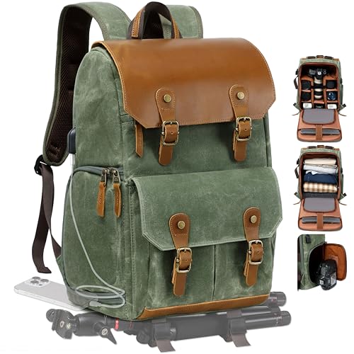 TARION Kamerarucksack Spiegelreflex Fotorucksack Wasserdicht | Leicht und Kompakt | Klein DSLR Rucksack mit 15“ Laptopfach und Regenhaube(Grün)
