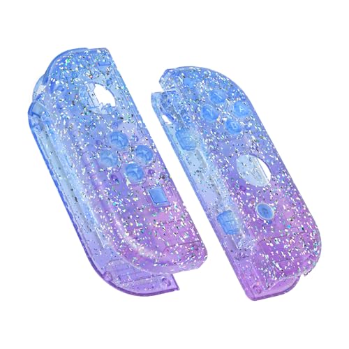 eXtremeRate NS Joycon Hülle & Tasten, DIY-Ersatz Gehäuse Case Grips Skin Shell & Knöpfe Buttons Umbau Kit für nintendo Switch/Switch OLED Joycon Controller-Glitzer Clear Bluebell Violett[KEIN Joy con]