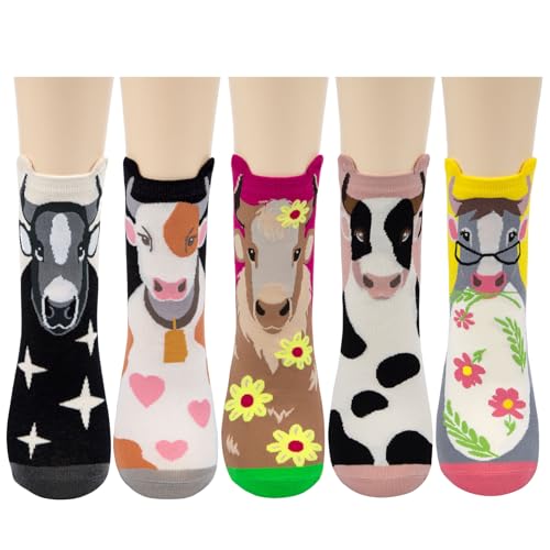 Chalier Cozy 5 Paar Damen Socken Hunde Tiere Socken Lustige Baumwolle Crew Socken Geschenk Einheitsgröße(Rinder)